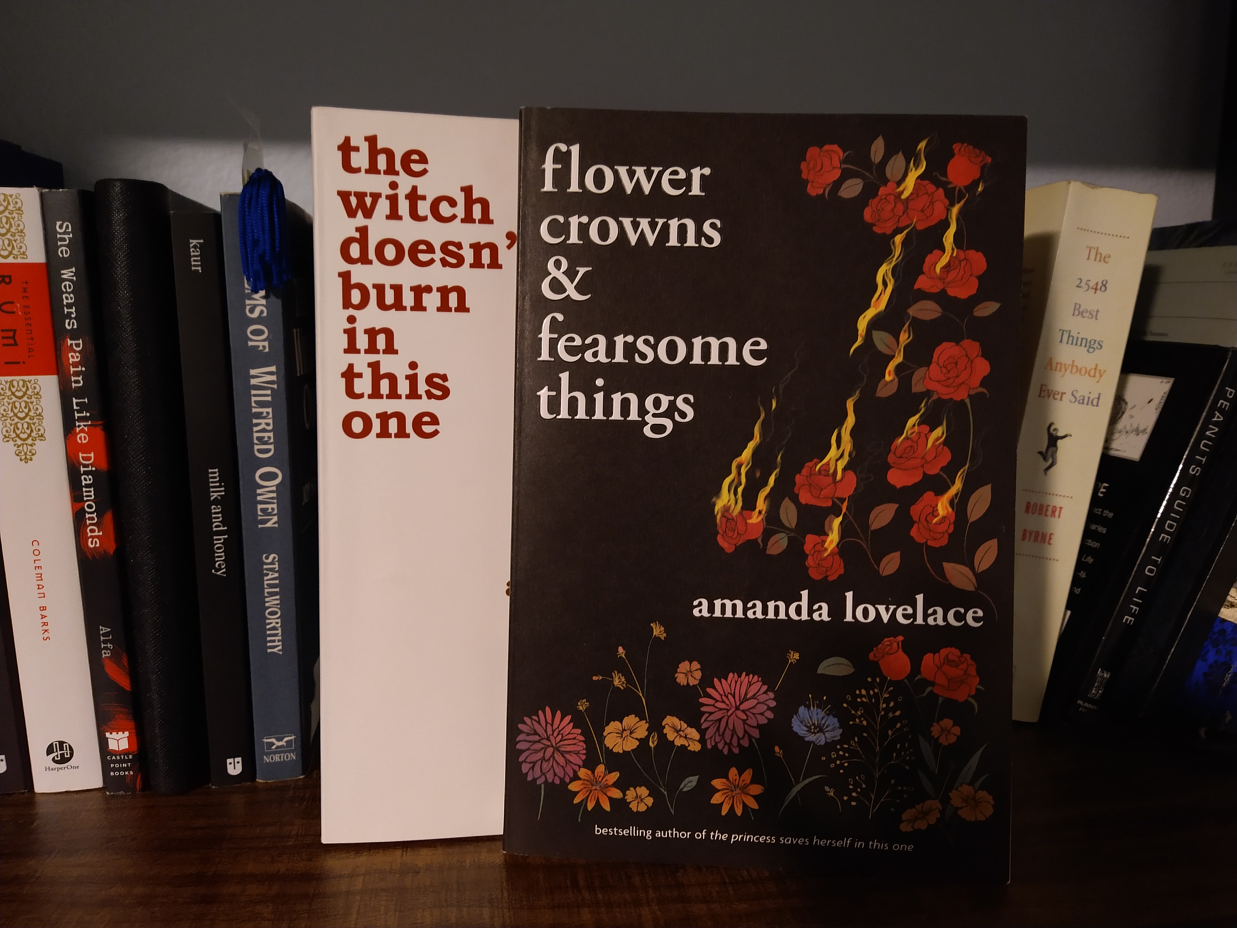 amanda lovelace came later. I was looking for poetry for an April read one year and came across her first collection, the princess saves herself in this one. That title. It was everything I was looking for and then the witch doesn’t burn in this one came out and I was done. It’s probably my all time favorite book of poetry and yet I can’t seem to keep a copy in my possession. Every time I have one, I come across a friend in need of some fire and it helps them too.